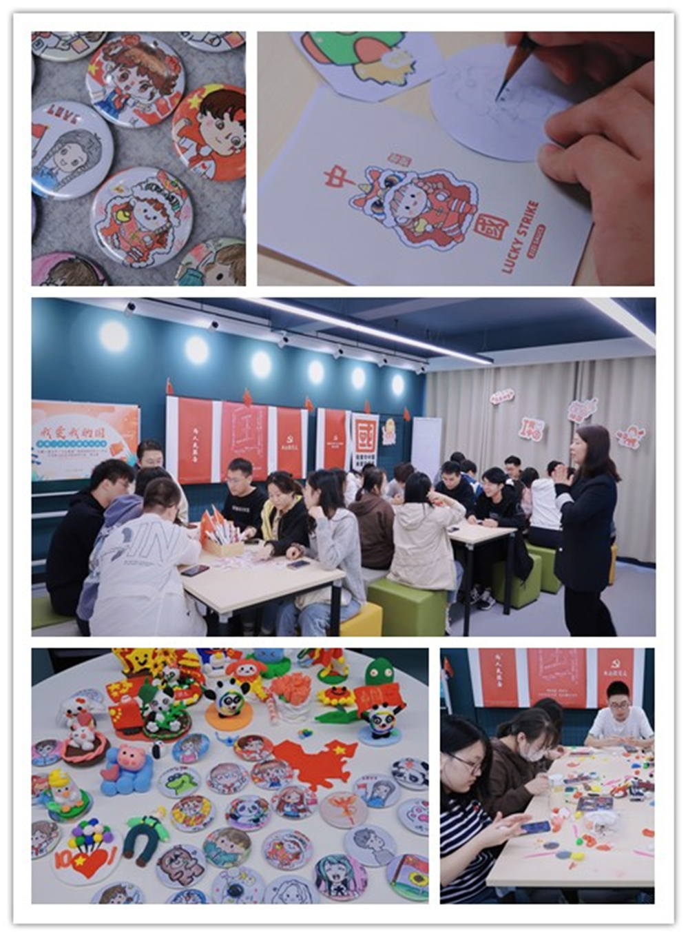 以青春之名迎接二十大,在徽章上书写青春誓言。活动分为美育教学与艺术体验两个版块,首先由专业美术机构付小雨老师为师生现场讲解美术绘画中构图、配色等相关知识和黏土造型处理中的揉、搓、粘等技巧等并进行示范创作;在辅助参与者实践操作,进行艺术体验的环节中,现场气氛轻松热烈。参与师生兴致盎然,专心致志地投入到爱国主题的徽章制作和创意黏土的绘画和制作过程中,获得真切充实的审美体验。同学们用画笔在在自己徽章上写下深情寄语,为祖国献上最美的祝福;用黏土捏出一颗颗爱国心,捏出了爱国爱党情怀,促进员工全面成长、塑造美好心灵。
