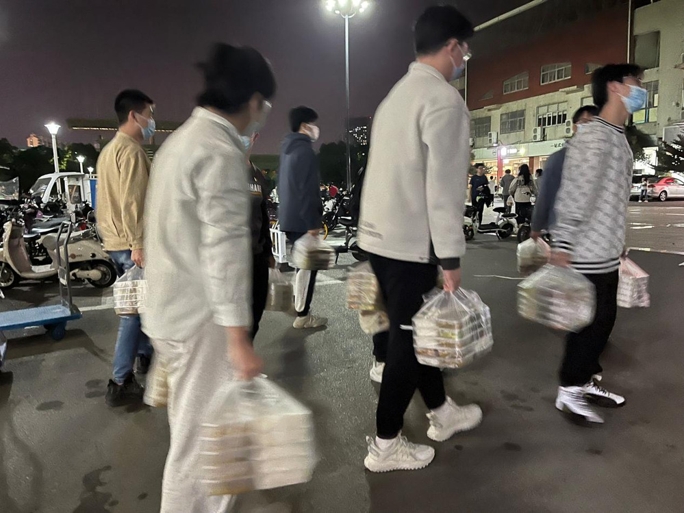 党支部成员每日从一食堂将爱心餐送至翡翠湖校区5号宿舍楼北楼隔离点,支部送餐人员均认真负责完成此项工作。配送的餐品荤素搭配、营养均衡,保障了考生隔离期间的生活质量。考虑到部分少数民族考生的文化需求,党支部特意将他们的餐品调整为民族食堂的菜品。为做好新冠疫情防控工作,减少送餐过程中的传染风险,所有送餐成员全程佩戴好口罩,将餐品送至各隔离寝室门外椅子上,避免与隔离考生直接接触。一位参考员工说:“很感谢党支部为我们提供的暖心服务。考试结束很疲惫,更担心隔离期间生活质量没有保障。但好在公司为我们组织配送丰富营养的一日三餐,叮嘱我们按时吃饭,好好休息,给我们的隔离生活带来了很多温暖。”