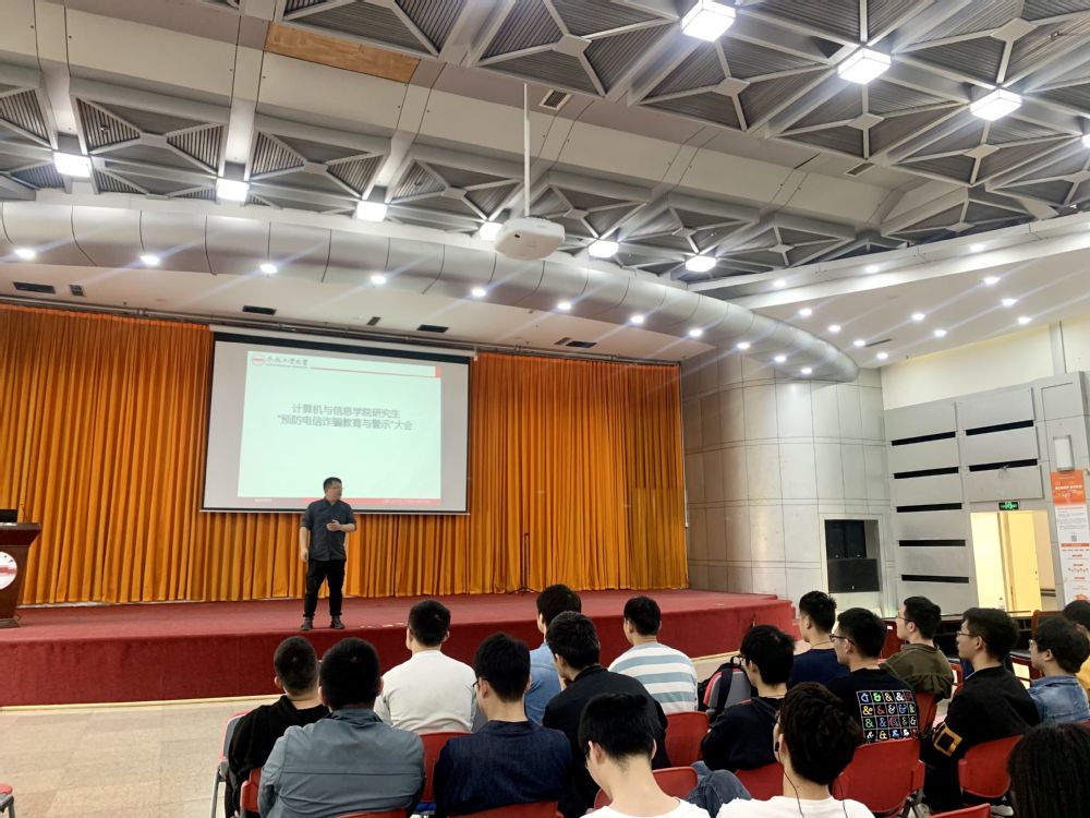 会上,学工部崔健副部长揭露了目前网络诈骗犯罪具有诈骗数目大、隐蔽性强、行为人拥有一定的网络技术知识、结伙作案多、犯罪向组织化方向发展等特点。引导同学们牢固树立正确的消费观和金钱观,不贪图小利;掌握安全知识,增强防范意识。
