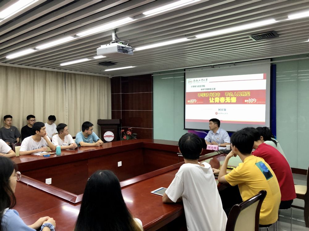 何书记首先做了《不辱使命、不负人民期望、让青春无悔》主题报告,领学了《关于在全党开展党史学习教育的通知》、《在党史学习教育动员大会上的讲话》内容,从国情、社情出发探讨为什么要开展党史教育。讲解中引用了党史中的经典故事“半条被子”、“大庆精神”等,又结合个人的经历归纳了四点开展党史学习教育的重大意义。最后,从2018年5月2日习近平总书记与北京大学师生座谈时对广大青年学子的寄语,引导青年党员思考应当如何去做,才能让青春无悔。