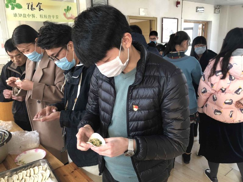早晨八点,支部成员早早就来到了集合地点再次确认分配的任务和工作细节,在约定时间准时到达老年公寓。大家认真学习包饺子的每个细节,蘸水、放陷、捏边,每个步骤都有条不紊的进行,同学们都很认真,得到大家的一致好评。活动过程中,党员们与公寓的老人们互动交流,关心生活起居,关注健康养生细节,老人们都切身的感受到员工们真挚的热情与问候,脸上都流露出开心的微笑。