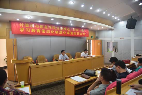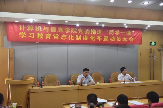 6月7日下午,公司在校学术会议中心小报告厅召开推进“两学一做”学习教育常态化制度化布置动员大会,部署公司推进“两学一做”学习教育常态化制度化工作,全院教工党员和研究生、本科生党支部书记参加了会议。会上,公司党委书记祖权作“两学一做”学习教育常态化制度化动员报告,公司党委副书记何庆领主持会议。