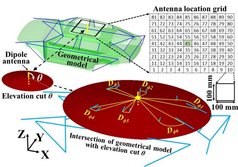 Figure 1. Design of V2X dual-antenna solution using a simplified geometrical model.
