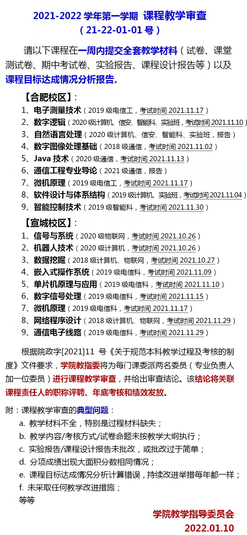 课程教学审查通知(21-22-01-01号)