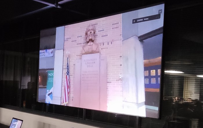 在贝尔实验室,职工黄博士采用5G直播设备,对实验室的参观区域进行了介绍,讲解了贝尔实验室的发展历程,贝尔、香农、朱棣文等顶尖科学家的事迹,一批具有划时代意义的发明创造实物(晶体管、激光器、太阳能电池、发光二极管、数字交换机、通信卫星、电子数字计算机、C语言、UNIX操作系统等等)。黄博士还通过镜头展示了诺贝尔奖证书、科学家的手稿,以及众多重大科学事件的珍贵影像。