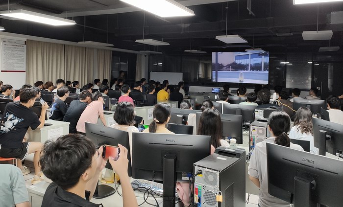 6月8日晚上8点,在翡翠科教楼D502直播大厅,公司电子信息工程专业2021级147名同学参加了一场5G直播“认知实习”教学活动。实习对象为全球知名的研究机构“贝尔实验室”。