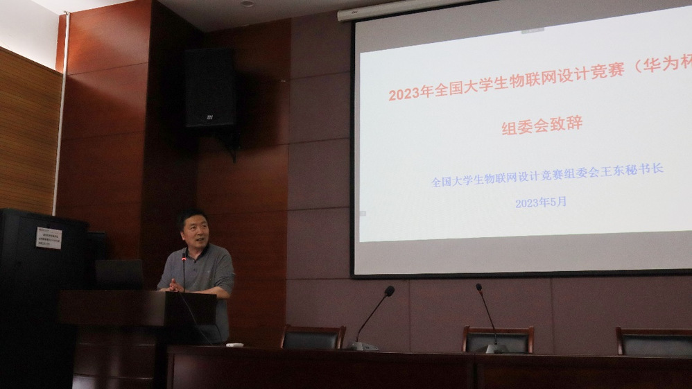 教育部计算机类教指委物联网工程专业教学研究专家组秘书长、全国老员工物联网设计竞赛组委会秘书长、上海交通大学RFID与物联网研究所所长、博士生导师王东教授代表组委会为活动致辞,回顾了2014年以来大赛办赛历程,分享了在技术储备、团队组建、校企合作等方面的宝贵经验,同时对公司在该赛事上的组织和成绩给予高度的赞扬。