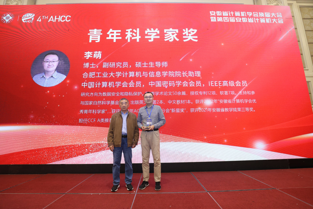 近期,2022年度安徽省计算机学会奖励名单发布,公司副研究员李萌获评优秀青年科学家奖,硕士生陈毅飞获评优秀硕士学位论文(指导教师:郑淑丽、李萌),硕士生樊高金获评优秀硕士学位论文(指导教师:杨静),硕士生杨雅静获评优秀硕士学位论文(指导教师:俞奎)。