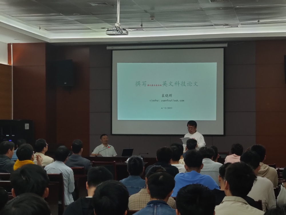 报告会上,袁晓辉教授首先以“写论文是为了啥”入题,介绍了完成科技论文的基本过程及撰写学术论文的重要性。然后袁教授结合多年从事科学研究、指导员工以及担任国际期刊编委等经验,围绕科技论文的一般结构进行展开,具体讲述了如何写作论文引言部分,如何阐述方法,如何进行实验结果呈现和分析,如何撰写摘要和结论等。最后,袁教授以审稿人的视角审视文章,分享了论文撰写时需要注意的要点。