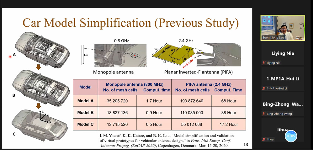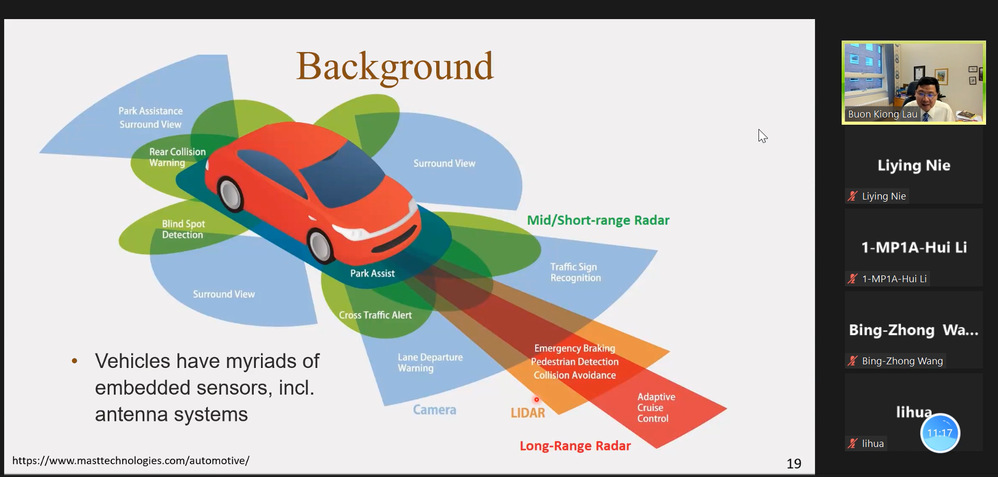 应TapTap点点副研究员聂丽瑛邀请,2022年11月24日,瑞典Lund University的Buon Kiong Lau教授在线上为公司师生做了题为“Antenna System Design for Future Cars”的学术报告。TapTap点点的相关老师和研究生参加了此次报告。