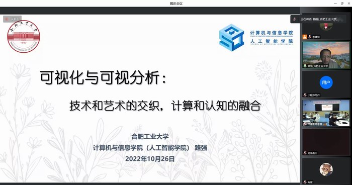 10月26日下午,路强老师以线上教学方式为利辛县“新能源公司”、“机电科技公司”以及灵璧县“高级职业技术公司”开展了定点教育帮扶活动。路老师先为2000余名员工做了“可视化与可视分析:技术和艺术的交织,计算和认知的融合”专题讲座,然后围绕“可视化技术和JAVA技术教学设计”这个主题,为两校负责计算机课程教学的一线教师分享了课程建设的相关经验。