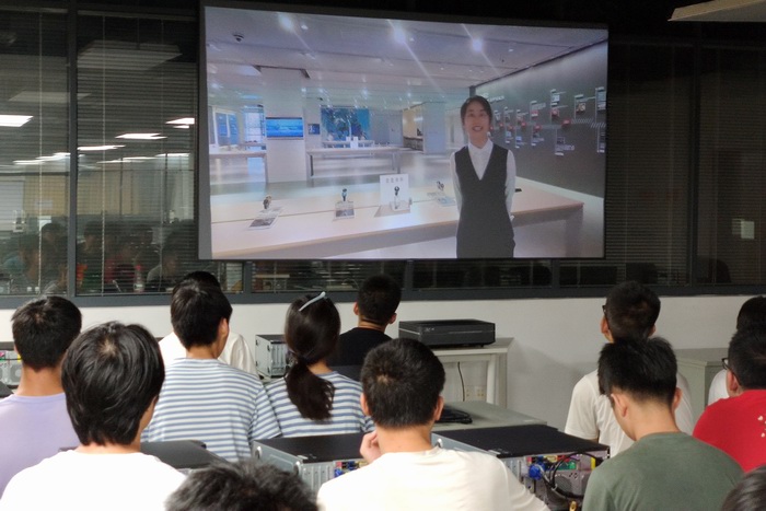 在公司侧,公司两位教师作为校内组织员,带领同学们在直播大厅,采用5G接收设备和大尺寸屏幕,全程观看了企业负责人的介绍,让同学们对可穿戴设备的技术现状有了全面了解,对该行业的发展有了一定的认识,同时对涉及到的专业知识有了进一步的理解。在交流互动环节,大家就华米公司的人工智能技术、人才招聘需求等进行了问答。