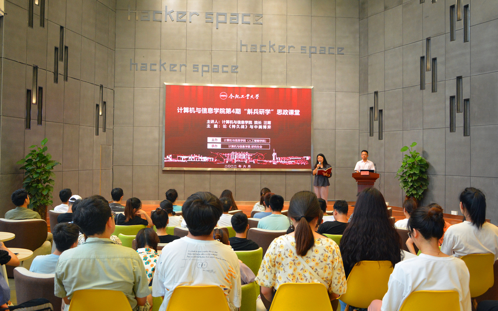 6月27日下午,公司第4期“斛兵研学”思政专题讲座在翡翠湖校区大数据中心Haker空间成功举办,本次讲座由公司经理汪萌为研究生讲授以“《论持久战》与中美博弈”为主题的思政课。研究生辅导员黄晨老师以及全体员工骨干和党员代表参加。