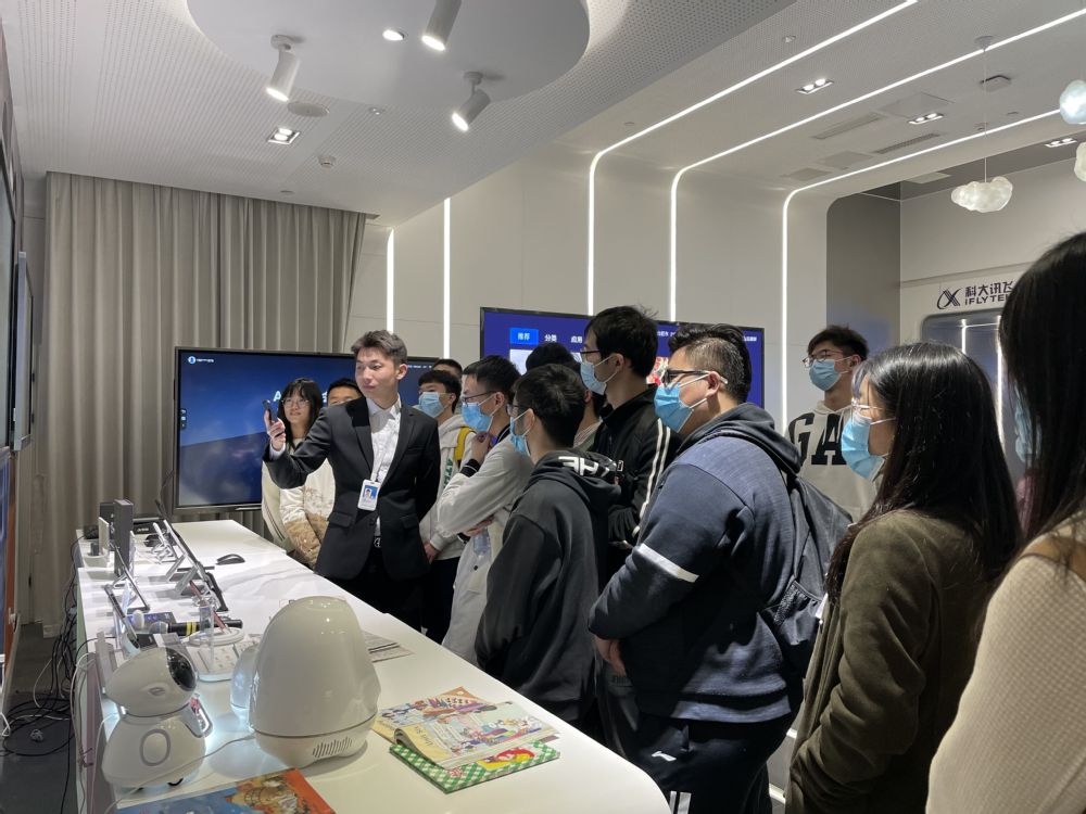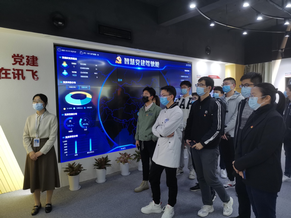 支部党员首先参观了党建工作展厅。科大讯飞围绕企业发展推动A.I.赋能党建工作,落实“五星党建”模式,开展了丰富的党建工作。员工们现场体验了“学习强国”APP语音播报功能,虚拟主播讲党课,VR模拟实景党史学习等项目。党员们学习了党史,也感受到“互联网+党建”的创新活力。随后,党员们参观了人工智能体验馆。讲解员详细介绍了企业目前在教育、医疗、政务、农业等方面的人工智能解决方案和发展动态。结合自己的专业背景,现场党员都深感科技创新是企业发展的原动力,是提高社会生产力和综合国力的战略支撑。人才的厚度决定了科学探索的高度,站在“十四五”新起点上,要实现高水平科技自立自强,青年人才要挑大梁、当主角。