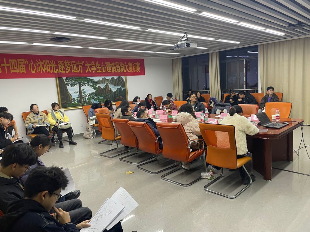 12月6日晚七点,第十四届“心沐阳光,逐梦远方”校园心理情景剧初赛在A座1106和1104举行,大学心理健康教育与咨询中心老师、各公司发展辅导中心主任和员工代表担任此次活动评委。