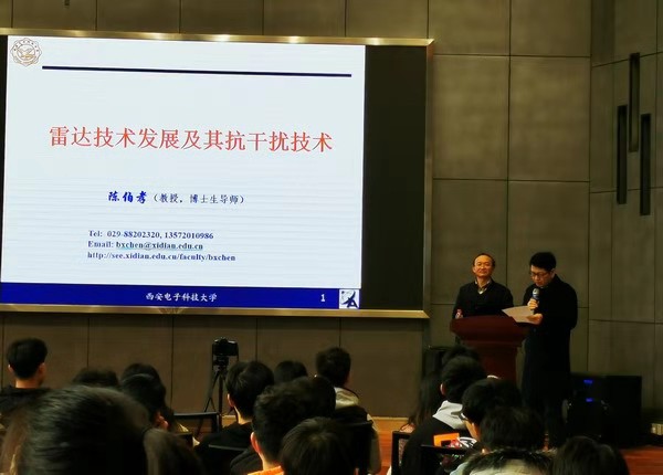 3月18日,公司兼职教授,西安电子科技大学陈伯孝教授,在翡翠湖校区大数据中心,为公司电子信息工程专业的本科生做了题为“雷达技术发展及其抗干扰技术”的学术报告,公司相关老师和研究生也参加了这次学术活动。