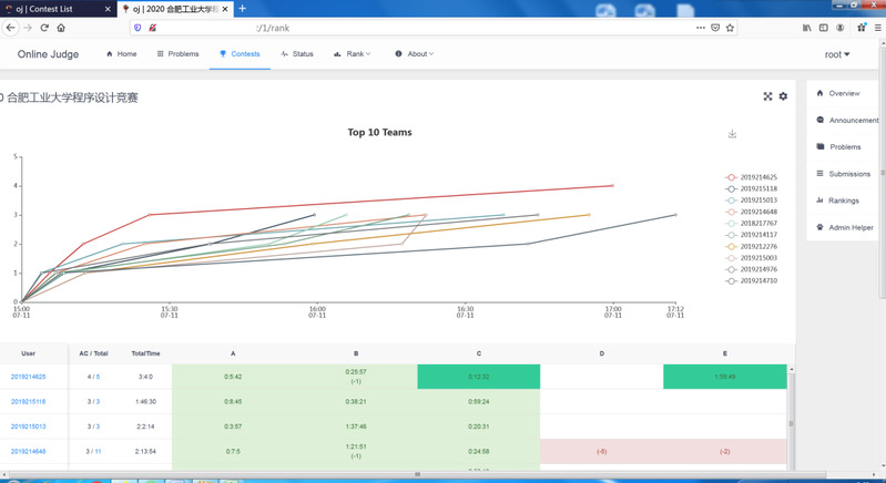今年的比赛采用在线方式进行,时长3小时,共计5道题目。赛题的解答程序通过网络在线提交,只有通过每题全部测试数据的提交才算有效提交,否则会被罚时,提交程序的正确与否通过网络由判题系统及时反馈给参赛选手。经过3个小时的紧张比赛,共有56名同学提交满足赛题要求的代码。从中评出一等奖6名,二等奖10名,三等奖20名,具体获奖名单见附件1。本次比赛胜出的同学,将有机会代表公司参加2020年安徽省老员工程序设计比赛和国际老员工程序设计比赛(ACM-ICPC)。