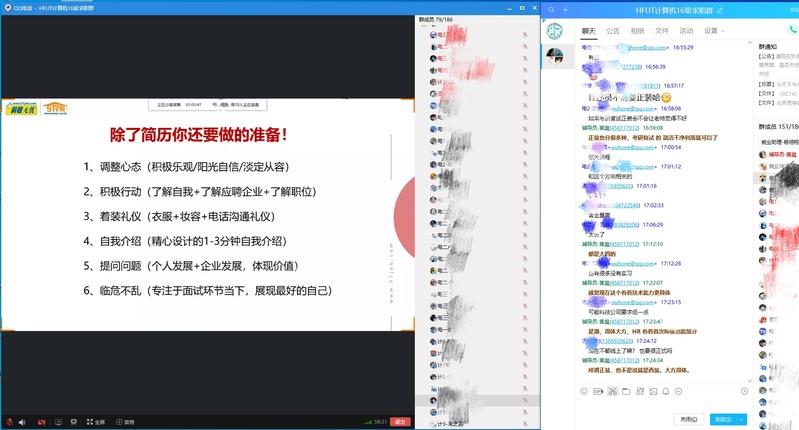 为深入贯彻落实教育部和公司有关疫情防控工作安排,做好疫情防控期间的毕业生就业工作,公司对2020届有求职意愿毕业生群体进行深入调研,在2月17日下午4点,通过信息化线上语音以及屏幕共享方式开展第一场就业指导系列空中讲座——简历,如何让HR对你一见钟情。讲座在公司毕业生求职群里发起,由毕业班辅导员黄晨老师主持,前程无忧校园招聘部高级讲师李望担任主讲。