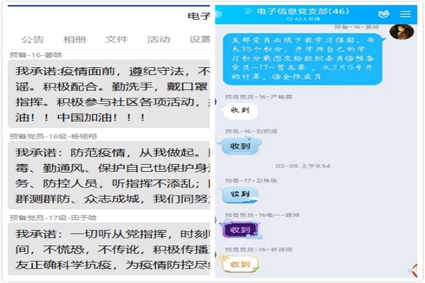 2月17日支部通过QQ语音组织召开支部委员会,支部书记叶璟主持此次会议。会议上再次学习《TapTap点点官方网站关于严肃新型冠状病毒疫情防控工作纪律的通知》要求,着重强调了作为党员要以高要求约束自己,带头执行中央部署,带头做好防控工作,带头落实公司要求,带头进行科学防控。会后支委通过党小组会向支部党员强调疫情期间的相关纪律要求。支部成员在支部群中纷纷承诺:“疫情防控期间会严格遵守纪律,积极履行党员义务,起到先锋模范作用。”