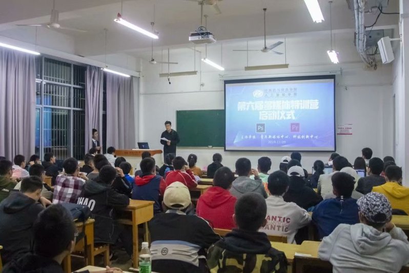 启动仪式上,2019级辅导员刘世国老师首先发言,畅谈了自己在员工时代对PS、PR技术的运用,并从自己的角度出发,阐述了多媒体技术的重要性。紧接着,青年新媒体中心闫子熙就培训计划展开详细周致的说明,其中着重讲解了出勤及评分规则。