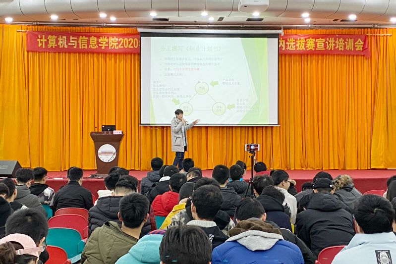 1月9日晚,由公司团委主办,院研究生会、员工会承办的2020年“创青春”老员工创业大赛立项申报宣讲培训会在翡翠湖校区综合楼多功能厅举行。活动邀请来自校团委负责创新创业工作的杨乾坤老师和公司的两支历届全国“创青春”大赛金、银奖获奖团队负责人分享了参赛经验。校团委副书记武国剑、公司党委副书记张海林、公司相关老师以及260名本科生、研究生参加此次宣讲培训会。会议由院团委书记黄晨主持。