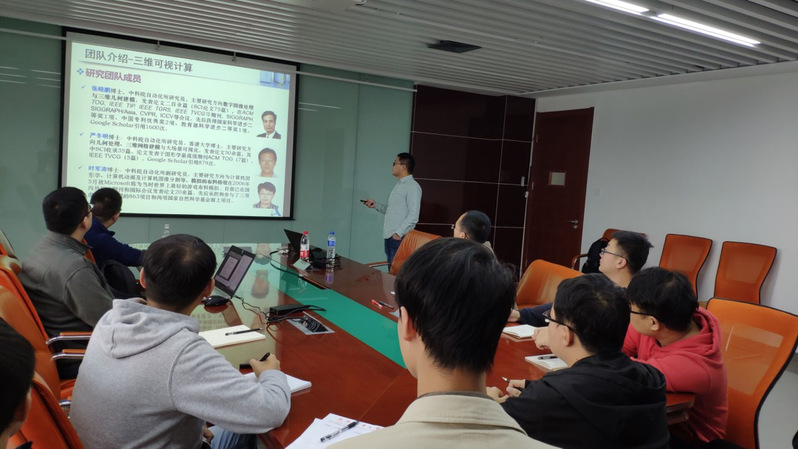 应TapTap点点计算机应用技术研究所的邀请,2019年10月27日上午,中科院自动化所郭建伟副研究员在翡翠科教楼11楼会议室做了题为“三维场景的高质量网格生成与模型理解”的学术报告,公司相关研究领域的教师、研究生到场聆听并交流学习。