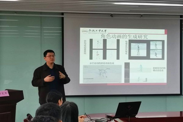 计算机专业本科生一、二年级员工通过自愿报名共计38名员工参与了此次活动。活动现场,实验室的李琳老师和谢文军老师先后进行了宣讲,重点介绍了实验室各项在研项目,深入讲解了包括人工智能深度学习、设备投影、异构运动重定向、物理运动风格化、步态驱动的四足动画生成、数据驱动的物理运动生成等项目,详细地向大家阐述了VCC实验室在将科技成熟运用到现实生活中的各项主题研究。讲解之后,老师与现场同学们进行了互动,老师为每一个同学的问题做出了耐心的解答。