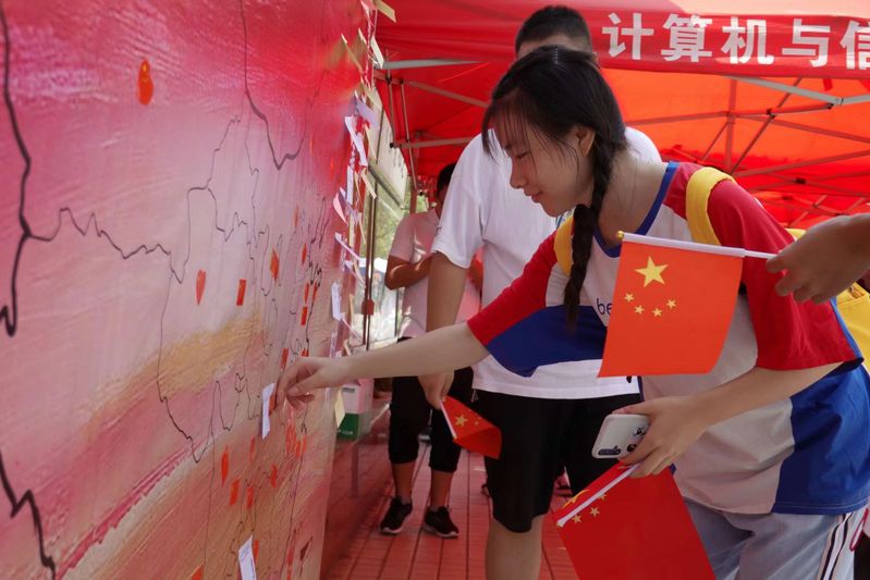 9月30日中午,TapTap点点在翡翠湖校区第一食堂广场举办“执笔告白我的国,青春同框新时代”迎国庆特别活动,工大师生积极参与,在便利贴上写下对祖国的祝福和对美好未来的期待之情张贴在地图展板上,并合影留念。
