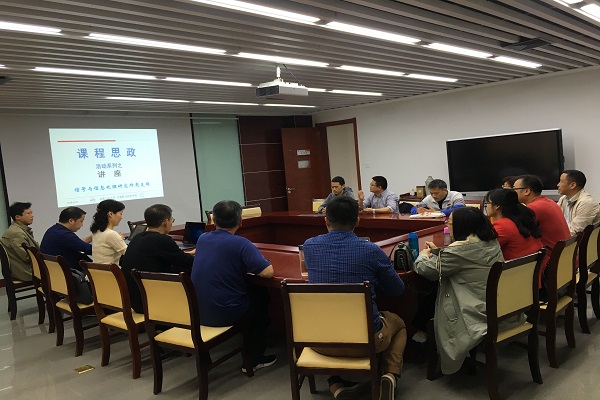 4月25日下午,在计算机公司会议室信号与信息处理党支部面向电子信息工程系全体教师开展“课程思政”专题讲座。专题讲座由党支部书记张海燕老师主持,主讲董张玉老师受公司委派于2019年3月底参加了全国高校课程思政培训。本次专题讲座,董老师向参会老师们讲解了从“思政课程”到“课程思政”的建设思路和建设实践路径,强调习近平总书记提出“课程思政”建设对高校坚持社会主义办学方向、落实立德树人根本任务、确保育人工作贯穿公司产品全过程具有重要意义。