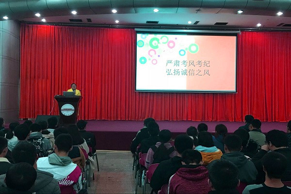 11月18日晚上6:00,公司“严肃考风考纪,弘扬诚信之风”2018级年级大会在综合楼301举行,年级辅导员和2018级全体本科生参加。