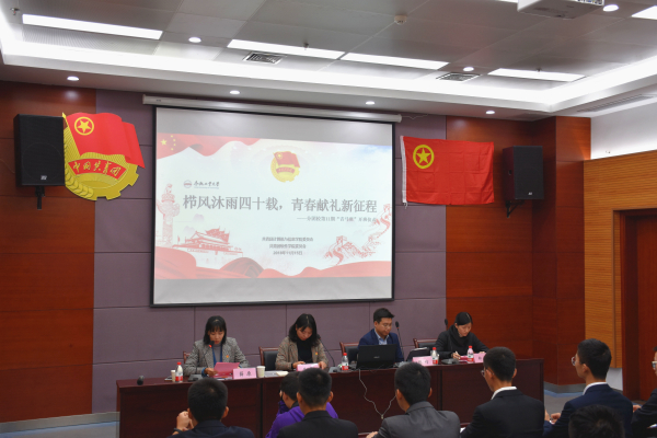 开班仪式后,由校团委书记陈竹进行了主题为“团员青年的初心与使命”的分团校第一次授课讲座,报告内容主要分为“共产党人的初心与使命”和“如何做一名合格的共青团员”两部分。陈竹书记强调,共青团员是中国共产党的得力后备军,需要有坚定的政治立场。青年团员通过在团校和平日的学习能够不断坚定理想信念,坚定不移紧跟中国共产党的前进步伐;青年是祖国未来的希望,需要有端正的学习态度,在浮躁的网络环境中,不忘初心,牢记当代老员工的本职任务,以阳光、积极的态度,认真度过大学四年的青春生活;以饱满的状态为实现中华民族伟大复兴的中国梦而不懈努力,为成为德智体美劳全面发展的社会主义建设者和可靠接班人而不懈奋斗!