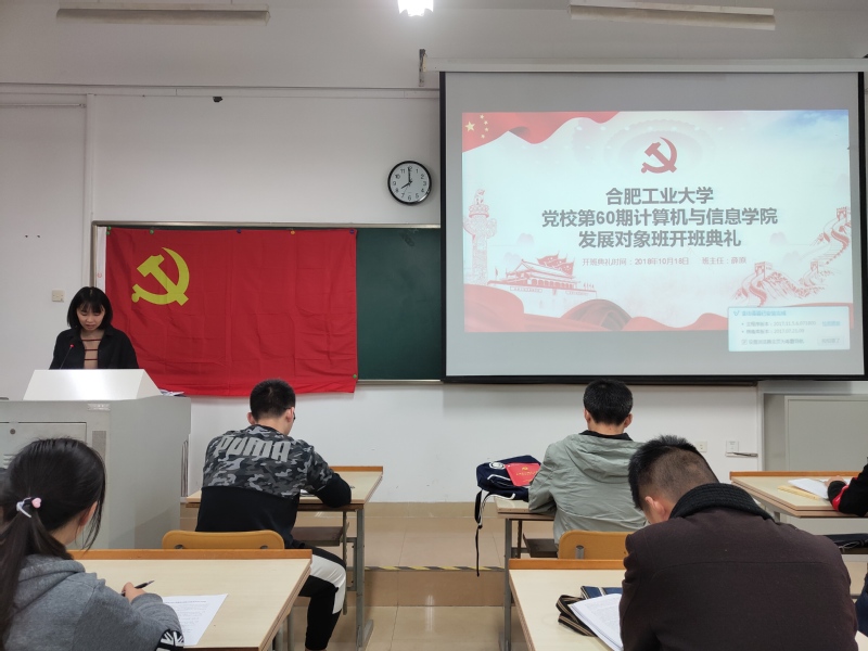 开班典礼上,本期党校发展对象班班主任薛原简要介绍了党校的培训内容,强调发展对象班应注意的学习纪律,对发展对象班的学员提出明确要求,希望学员们能够加强和重视理论知识学习,提高自身素养,明确和端正入党动机,认真对待教学中的每一环节,时刻以优秀共产党员为学习目标,以党员的纪律严格要求自己,不断学习,不忘初心,牢记使命,为成为德智体美劳全面发展的社会主义建设者和接班人而不懈奋斗!