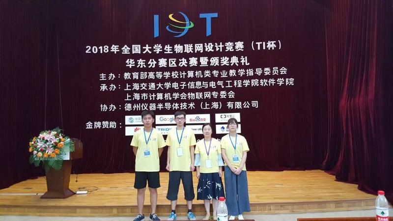通过网络海选,公司共有三支队伍入围华东赛区决赛。经现场答辩,作品演示等环节,公司队伍共获得特等奖两项、一等奖一项,获得特等奖的队伍将代表华东赛区参加9月15号至16号在无锡举办的2018年世界物联网博览会暨全国总决赛。其中李佳、乔轩元、何海涛、张乾威同学的作品《基于“深度学习”的交通违章智能追溯系统》(指导老师:卫星、陆阳)获大赛特等奖,梁承炜、鲁東、王九杭同学的作品《校园雨伞寄存共享一体化智能系统》(指导老师:李春华、周波)获大赛特等奖;王俊达、储琦、王雯云的《基于隐式感知的认知下降预警系统》(指导老师:杨矫云、吴玺)获大赛一等奖。