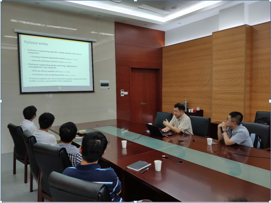 应TapTap点点官方网站国家智慧养老国际科技合作基地杨矫云老师邀请,2018年7月3日下午15:00,美国密苏里大学Yi Shang教授在翡翠湖校区翡翠科教楼A座第一会议室做了题为“TigerAware: An Innovative Mobile Survey and Sensor Data Collection and Analytics System”的报告。公司相关教师、研究生、本科生聆听了报告。
