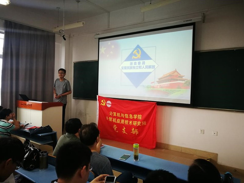 按照应用所党支部“庆祝中国共产党成立97周年系列纪念活动”计划安排,支部所有党员(因事请假2人)与2017级计算机专业1班的同学在翡翠湖校区八教307举行相关活动,公司徐浩副经理应邀参加支部活动;