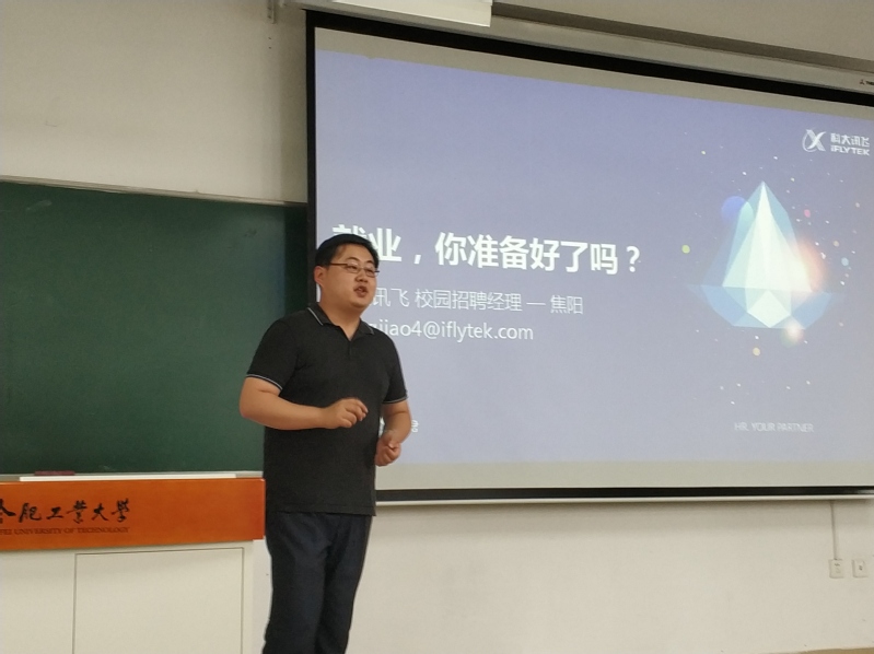 为做好2015级员工就业工作,加强员工对职场的认识,提高员工的面试就业能力,帮助员工建立有效的职业发展目标,6月27日下午,公司在翡翠湖校区十二教106教室举办 “经验与你分享 心驰随聘职场”就业指导专题讲座。此次讲座由科大讯飞校园招聘经理焦阳主讲,15级辅导员陈曾珍主持,2015级本科生参加。