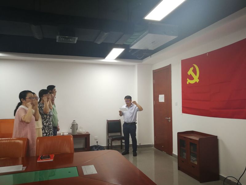 一、重温入党誓词:公司机关党支部全体党员在公司党委年永琪副书记带领下,面对党旗,举起右手庄严宣誓,在场的每一位党员都接受了一次党性教育。重温入党誓词,其目的是让大家时刻牢记自己是一名共产党员,要做到“不忘初心,牢记使命,矢志奋斗”。