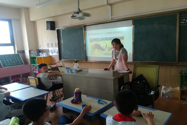 本次支教活动主要内容为帮助孩子们解答自然界中信息传递的主要方式及过程,并给出了代表性的例子。负责低年级的志愿者通过蝙蝠对人类的启示——声呐,向小朋友们展示了大自然信息传递奇妙之处。中年级的志愿者则选择了蚂蚁写出“霸王死于此”的小传说来引出信息传递的方法。高年级的负责志愿者则利用闻鸡起舞的小故事引出相关教学内容。课堂上,孩子们积极与老师配合,及时提出自己的疑惑,开展讨论;志愿者们则尽心地为孩子们解答,并及时进行拓展,以丰富孩子们知识面,激发孩子们的学习热情。