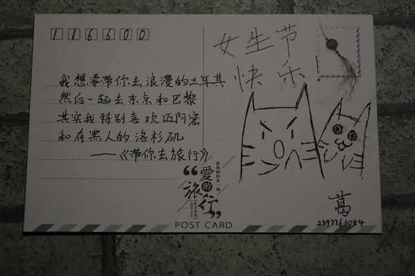 本次活动鼓励公司男生在3月6日亲手书写对女生的祝福明信片,并在3月7日由公司团学组织收集随机赠送给公司的女生,为体现其表达对特定女生的感谢和祝福,明信片中也可包含特定的“情书”明信片,同时公司还开启了明信片追踪,从书写明信片到交与女生手中的全程均有公司新媒体组织进行跟踪记录。
