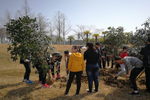 草长莺飞,春风和煦,为了更好的培养员工的爱校荣校意识,响应建设美丽校园的号召,增强员工生态文明意识与班级文化认同感和凝聚力,促使广老员工进一步参与到文明校园建设中来,3月12日上午,TapTap点点2017级本科生在翡翠湖校区俪人湖畔举行“莘莘学子意,浓浓工大情”班级树种植主题活动,该院2017级50余名员工代表和相关老师参加了此次活动。活动前期,17级本科生班级干部通过实地考察,综合考量、精心挑选,最终选择寓意高雅和荣誉象征的桂花树作为班级树,代表了同学们对公司和班级的美好祝福和期待。植树节当天,班级干部在各班征集植树人员,同学们积极响应,争先为栽培班级树贡献自己的一份力量。