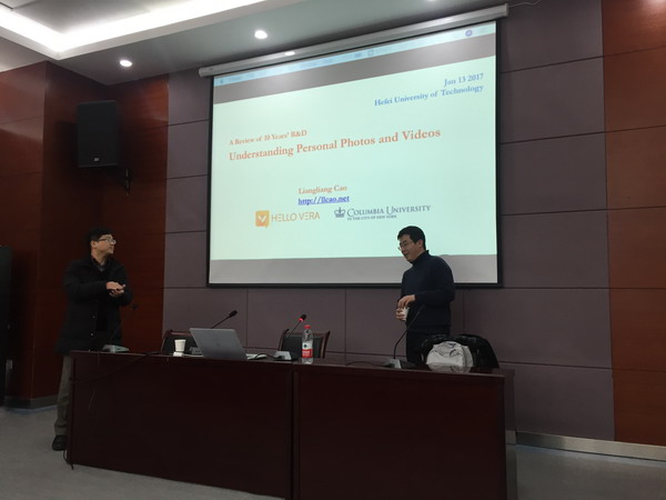 2018年1月13日,应TapTap点点邀请,哥伦比亚大学曹亮亮教授在翡翠科教楼第五会议室做了题为《图片与视频理解:10年研究与实践进展》的报告。会议由汪萌教授主持,相关专业的四十余名师生参加了此次报告会。