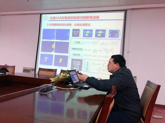 邢孟道教授首先简要介绍了合成孔径雷达(SAR)的基本概念和国内外发展情况,然后着重介绍了一种高分辨SAR雷达对复杂海面多舰船运动目标的SAR/ISAR混合成像方法。报告深入浅出地讨论了机载、星载雷达与目标之间的复杂相对运动补偿方法,和舰船目标自适应窗检测、伪目标剔除思路。最后向大家展示了我国高分三号卫星对港口地区的实际观测数据处理结果。整个报告条理清晰、内容详实,引发了在座师生的浓厚兴趣,大家分别就自己感兴趣的问题与邢教授开展热烈的讨论交流。