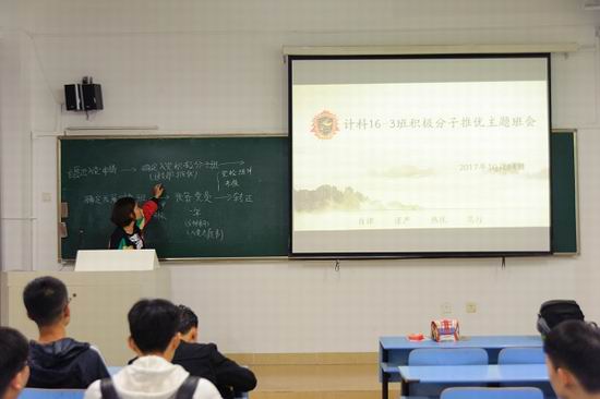 公司团委书记黄晨老师首先就《榜样》这部专题纪录片的涵义作用与各班级团支书进行交流,现今社会风气最为缺乏的就是榜样的力量,要弘扬这样的精神,深入发掘典型,需要让榜样的力量深入人心,让每个人心中都存在着一股正能量才是国家发展的原动力,之后对各班级团支部班会的开展和推优的工作进行具体安排,要求各班级团支部严格按照答辩-投票-公示的流程来进行组织。随后各班级团支部分别开展了“寻找身边榜样的力量”团员推优选举党校班积极分子班学员的主题班会。在班会上,各班候选人依次上台就自身的基本情况、思想认识以及对于如何发挥榜样的先进作用的理解进行阐述,现场也不断有同学与候选人们就班级团支部的建设进行交流,最终各班经过初期遴选、班会答辩、提问环节、现场投票及唱票、后期公示,共推选出共计41名优秀团员代表参加本次党校班积极分子班的学习。