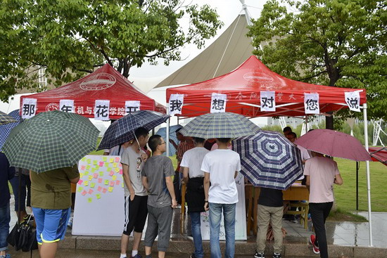 一张张小小的便签,一句句朴实但又真诚的话语,表达出同学们对曾经或当下的老师的感激之情,或者对老师们的节日祝福。尽管活动当天天公不作美,断断续续地下着雨,还是有不少路过的同学们停下了匆匆忙忙的脚步,在便签上写下一行行祝福,在这个教师节里,留下想对老师说的最真诚的寄语,抒发了自己对老师的感谢和不辱使命回报社会的决心。