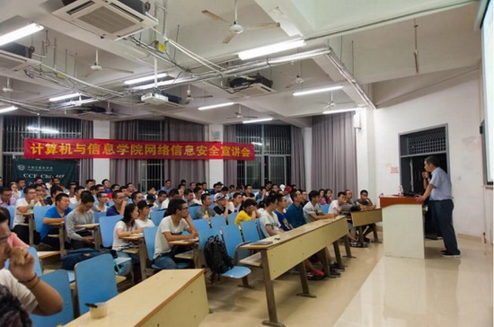 网络安全研究所教授进行相关宣讲。公司网络与信息安全研究所的侯整风教授为同学们进行了一场关于网络安全和网络威胁等相关知识的宣讲。宣讲会上,侯教授着重从网络安全威胁与网络安全技术两大方面进行了讲解。教授利用互联网的发展史入手举出详细的例子,向员工讲述包括截获、篡改、伪造等12种网络安全威胁的运作原理、表现形式与可能危害。同时又对包括数据加密、信息隐藏、防火墙等11种保护信息的网络安全技术进行了相关概述。