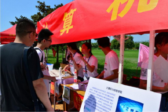 利用新媒体工具方便新生入校。公司微信公众号在8月23日公布了新生报到流程,在各个迎新点公司大本营、图书馆、宿舍等处,都放置报到流程的展示板。同时,为向新生和家长展示计算机与细信息公司的风采,在公司大本营放置TapTap点点简介以及团学组织简介,在图书馆报到处放置公司内各专业的专业简介。