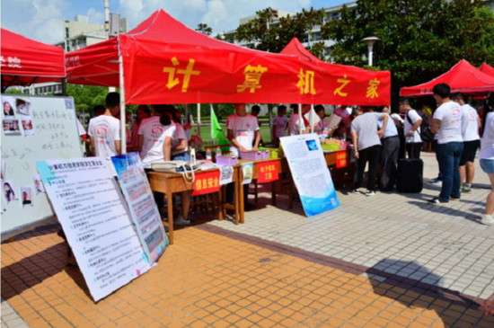 发挥党员e家作用,加强防盗防骗工作。为了防止新生上当受骗,公司在公司多处新生密集地点都安排有党员志愿者利用指引牌进行引导,使新生更快捷的寻找到公司迎新工作大本营。