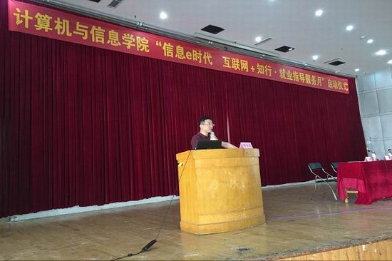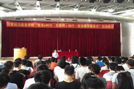 5月10日下午,公司举办了“信息e时代,互联+知行”2018届毕业生创业就业指导服务月启动仪式。公司副经理杨学志、公司党委副书记何庆领、年级辅导员及2014级全体同学参加了仪式。