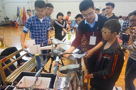 本次开幕式现场共有近600人次参观,现场展示科技作品35余项,其中最为特色的展品为非接触式视频心率监测,它采用普遍的摄影工具实现人体心率检测,吸引了参观者的注意,展品前人头攒动。另外还有基于UWB的变电站作业安全监测系统;主要面向儿童教育领域的情感交互机器人,旨在对儿童进行知识教育,并对其情商进行引导和提高;观赏性强的舞蹈机器人;可以进行偏振光导航的无人机;基于模型的假目标干扰FPGA设计实现……30余项高科技展品的纷纷亮相,使得在场师生零距离感受科技魅力,吸引了不少市民前来“围观”。本次科技节还邀请了翡翠小学的师生们共同参观科技展品,体验高科技,大手拉小手,共筑科技梦 。