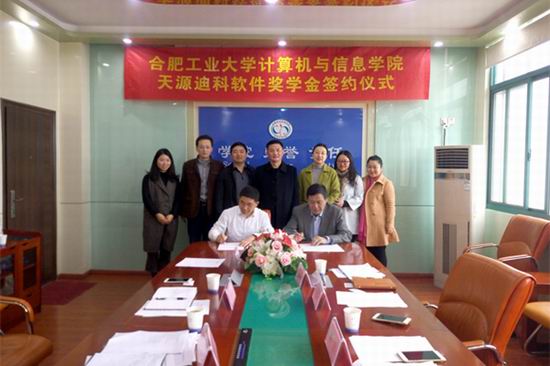 2017年3月28日上午,公司与天源迪科“软件奖学金”签约仪式在屯溪路校区科技楼516举行。